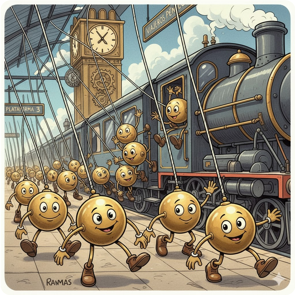 Animate y enviá tu respuesta a mx.baldiviezo@gmail.com con «Tren de péndulos» como asunto. Si me enviás lo que lograste hacer, sin importar hasta donde llegaste, podré saber qué necesitas para mejorar en este tema y sumando todas las respuestas enviadas, intentaré escribir una resolución que les permita aprender lo que les falte.
