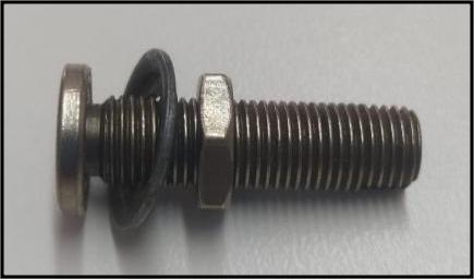 El tipo de válvula depende del inflador que tengas disponible. Si dispones de una bicicleta, te recomendamos sacarle una foto a la válvula que tiene y pedir en una gomería que te regalen algunas en desuso o comprar una en algún lugar donde vendan insumos para bicicleta. Sin embargo, es importante que, independientemente del tipo, la válvula sea de ajuste mediante tuerca para optimizar el sellado. En Argentina, las válvulas más usuales son de tipo Schrader, que están presentes los neumáticos de los autos y se encuentran principalmente en los modelos de bicicletas más económicos. En la siguiente imagen te muestro una válvula de este tipo. Se ve, también, que cuenta con una arandela exterior que ayuda al sellado.