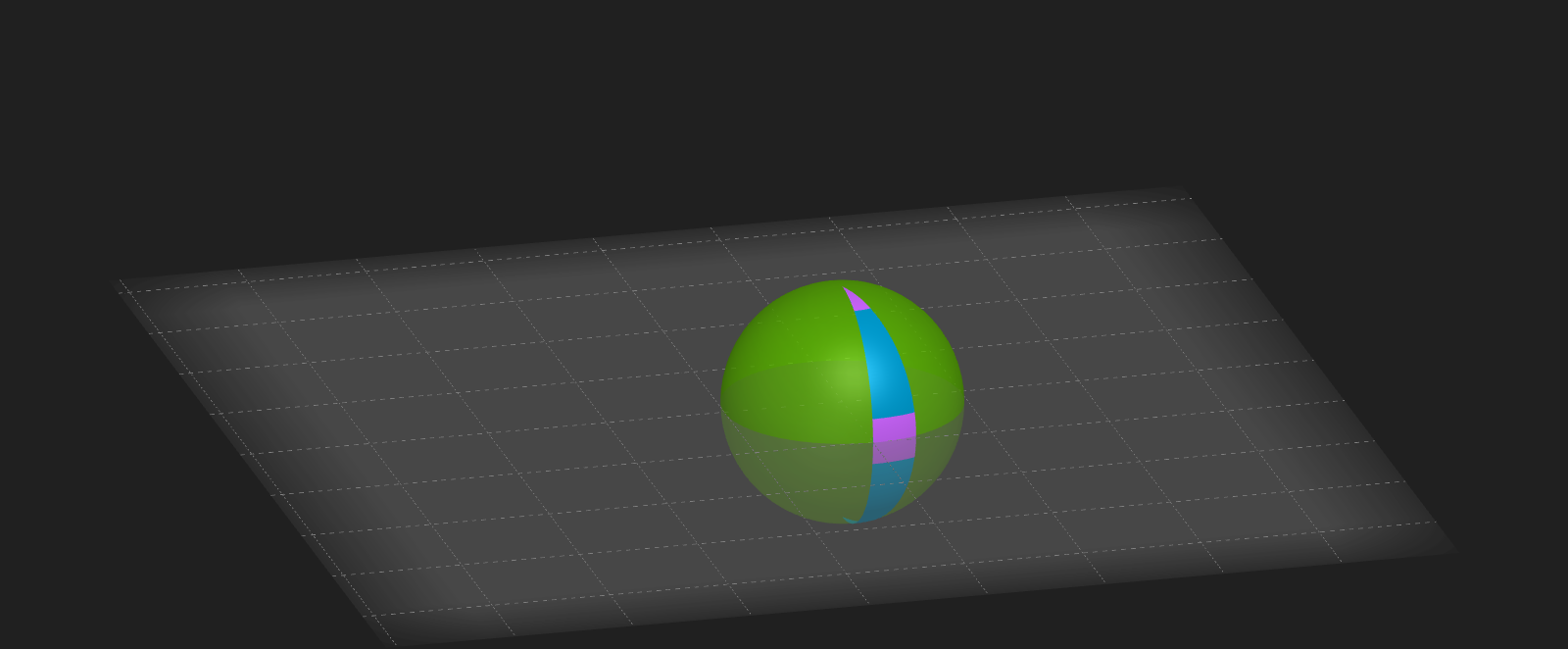 Como $\theta \in \left[ - \frac{\pi}{2}, \frac{\pi}{2}\right]$, la franja de ancho $\Delta \varphi$ es una «rodaja» como la representada en (Figura B1).